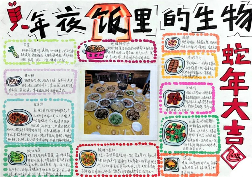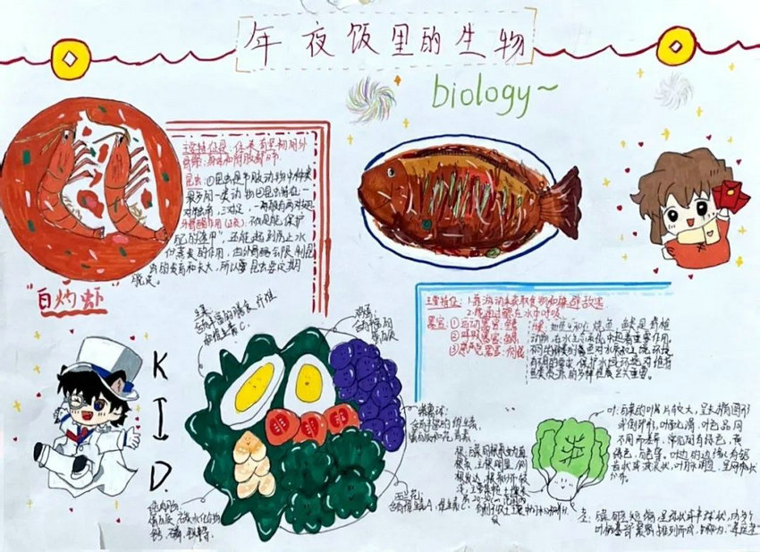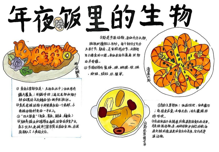 年夜飯不僅是團(tuán)圓的味道,更是一場奇妙的生物探索之旅!每一道菜背后都隱藏著大自然的秘密:金雞報(bào)曉、年年有余(魚)、蔬菜的綠色魔法、谷物的華麗轉(zhuǎn)變……,讓我們一起走進(jìn)年夜飯的餐桌,揭開這些美味背后的生物奧秘!