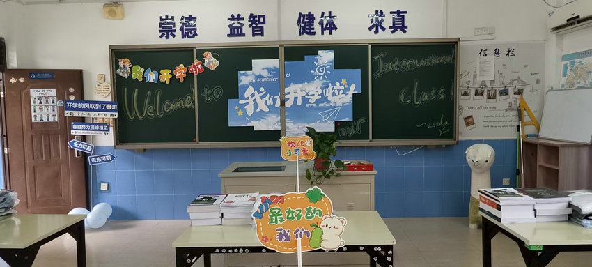 走進(jìn)高中部教學(xué)樓,各班教室已煥然一新。班主任們帶領(lǐng)提前到校的同學(xué)精心布置班級(jí)板報(bào)——色彩鮮明的插畫、鼓舞人心的勵(lì)志標(biāo)語(yǔ)與溫馨的歡迎語(yǔ)相得益彰;課桌上,嶄新的校服和教材也已整齊擺放完畢。