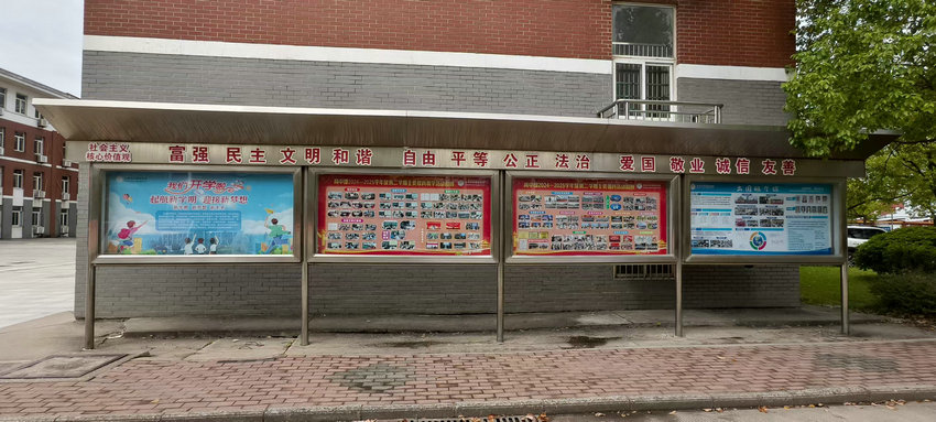 教學(xué)樓走廊的宣傳欄同步更新內(nèi)容,除了新生入學(xué)所需的指引信息和規(guī)章制度外,還增設(shè)了學(xué)校多元文化建設(shè)、優(yōu)秀學(xué)子展示等板塊,為新生提供實(shí)用參考。學(xué)校入口、教學(xué)樓大廳等關(guān)鍵位置,定制的迎新照片背景板格外醒目,背景融入了?;盏仍?,搭配迎新主題標(biāo)語(yǔ),既展現(xiàn)了校園文化,也為新生和家長(zhǎng)提供了打卡留念的好去處。