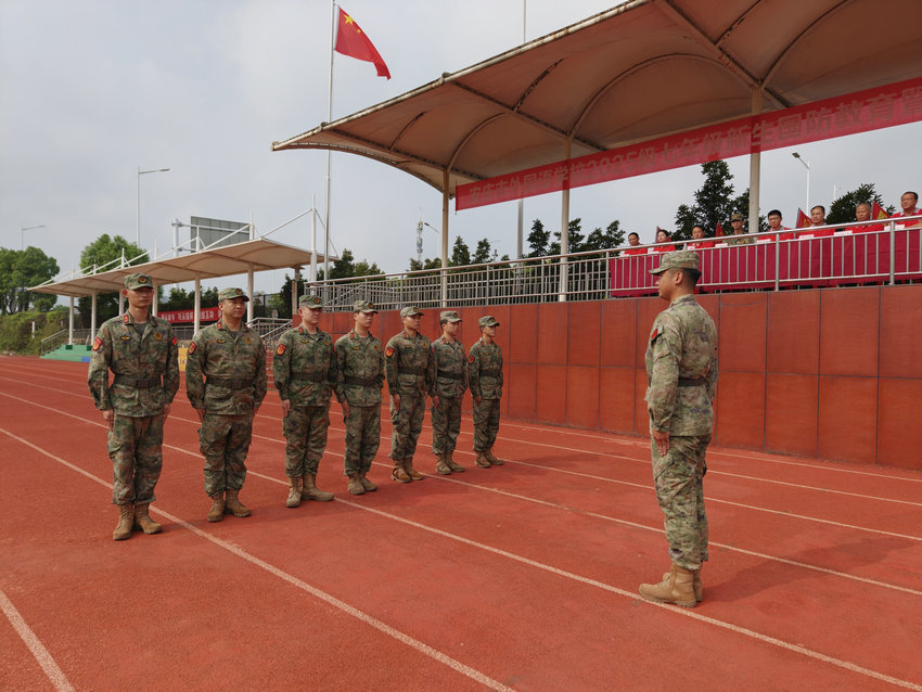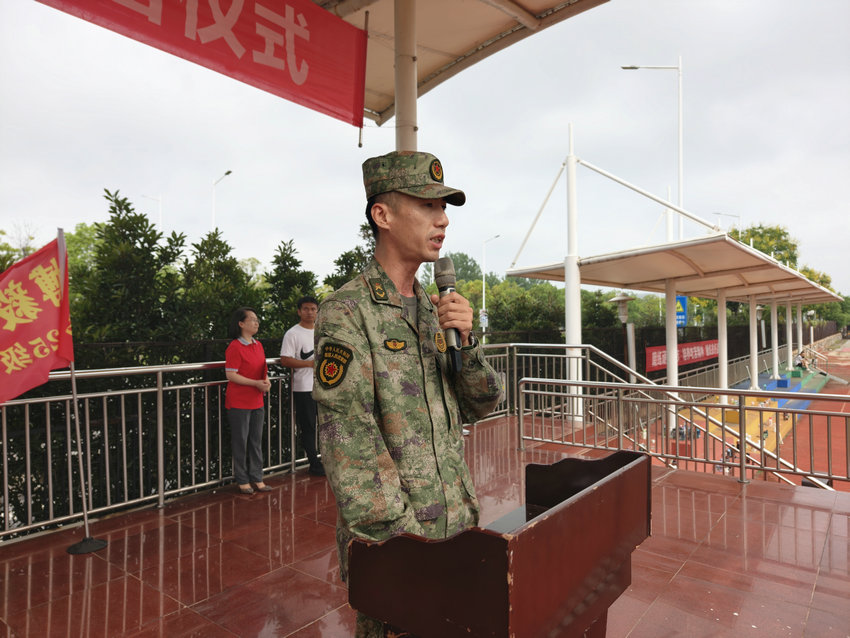 迎江區(qū)人武部參謀李可安、安慶市外國(guó)語(yǔ)學(xué)校校長(zhǎng)胡奇林、常務(wù)副校長(zhǎng)劉兵、黨總支書(shū)記兼副校長(zhǎng)蘆丹、初中部校長(zhǎng)助理李萍、初中部東區(qū)副主任徐麗虹、初中部東區(qū)副主任胡森、校團(tuán)委書(shū)記金根生以及全體七年級(jí)新生、班主任和各班教官出席此次啟動(dòng)儀式。