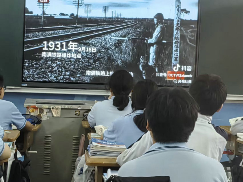 9月18日,在“九一八”事變紀(jì)念日這個(gè)承載著特殊歷史意義的日子里,安外高中部歷史組以課堂為陣地,精心組織了一場(chǎng)主題鮮明的“九一八”事件紀(jì)念活動(dòng)。本次活動(dòng)打破傳統(tǒng)授課模式,借助智能白板播放央視歷史紀(jì)錄片,帶領(lǐng)學(xué)生重溫那段屈辱與抗?fàn)幍臍q月,在沉浸式體驗(yàn)中銘記國恥、傳承精神。
