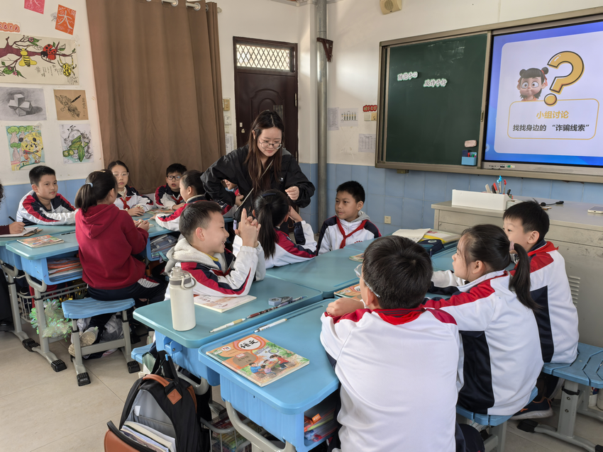 課堂上,師生通過情景判斷、小組討論和實(shí)戰(zhàn)演練,系統(tǒng)學(xué)習(xí)了游戲充值、兼職刷單等五種常見電信詐騙類型,并掌握了“不貪便宜、不泄秘密、遇事找?guī)褪?rdquo;的“三不原則”,以及“保留證據(jù)、告知大人、配合報(bào)警、修改密碼”的四步應(yīng)對法。學(xué)生們在沉浸式體驗(yàn)中提升了防騙意識和技能。