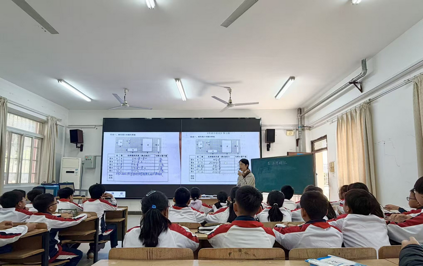 活動首環(huán)節(jié)為公開課展示,小學部陸慧娟老師執(zhí)教六年級數學《生活中的比》。課堂以貼近學生生活的趣味內容導入,迅速點燃學習熱情;教學流程從簡到繁、層層遞進,精準匹配六年級學生認知規(guī)律。尤為關鍵的是,本節(jié)課在節(jié)奏把控與時間分配上,與上周小初聯合課堂的初中教學高度適配,凸顯小初銜接特質。