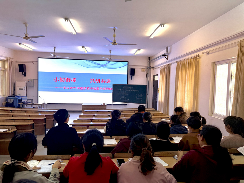 為深化小初數學教學銜接,促進學段間教學理念與方法深度融合,10月23日下午,安慶市外國語學校小學部在合班教室開展“小初銜接 共研共進”主題聯合教研活動。小學部全體教師、部分初中教師齊聚現場,圍繞課堂實踐與學段銜接展開研討,活動由王平豐老師主持。