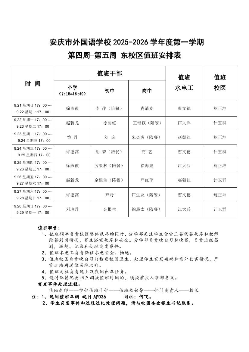 2025-2026學年度第一學期第四周-第五周東區(qū)干部值班表