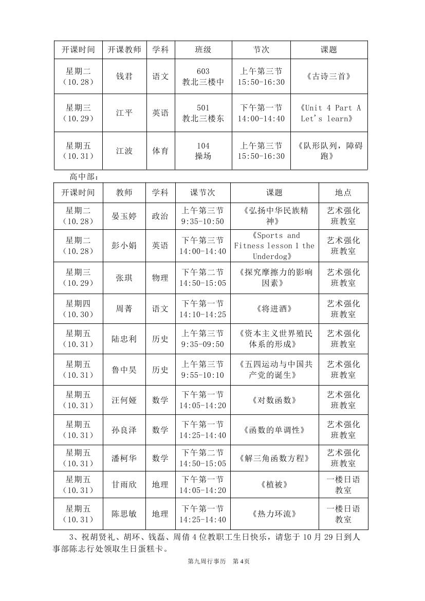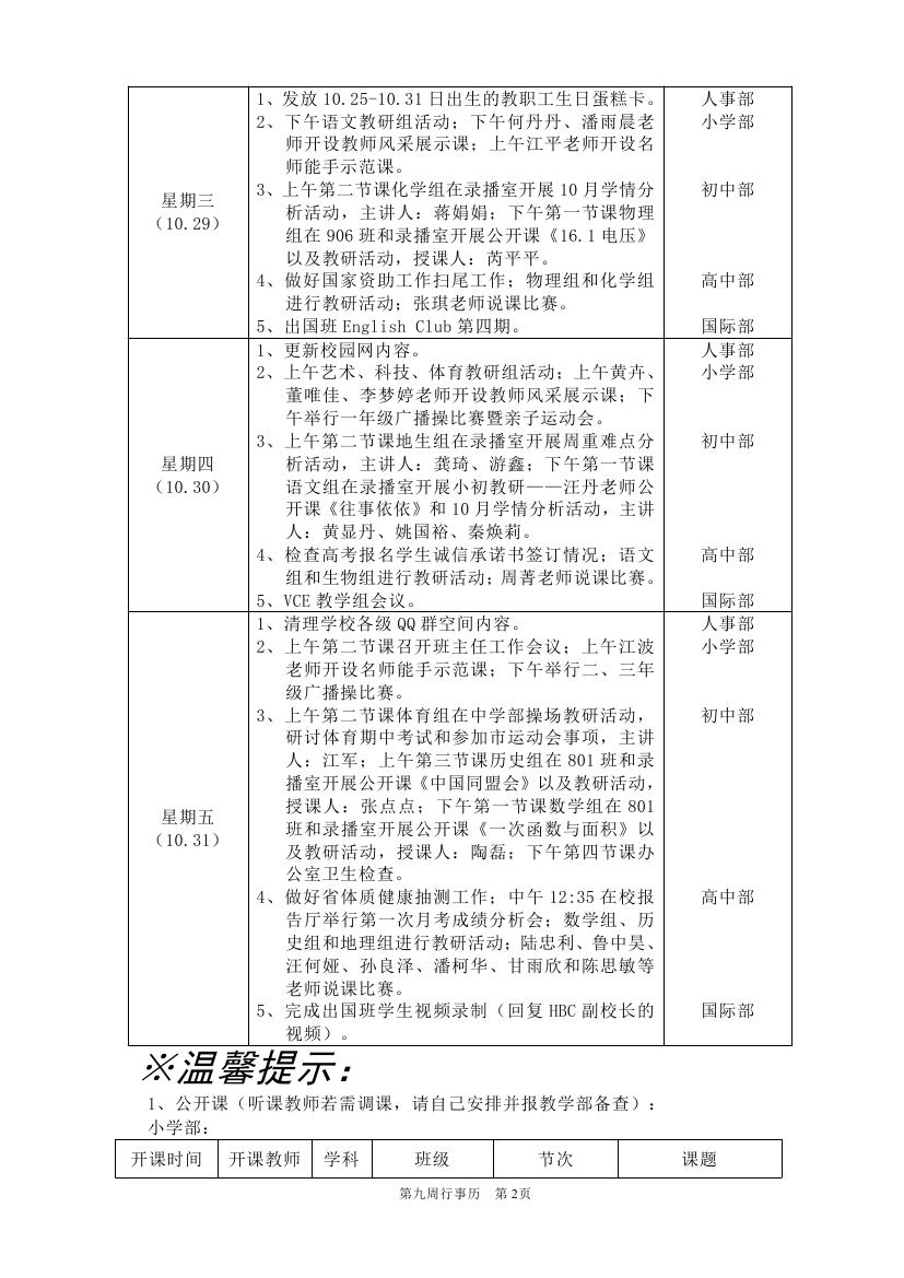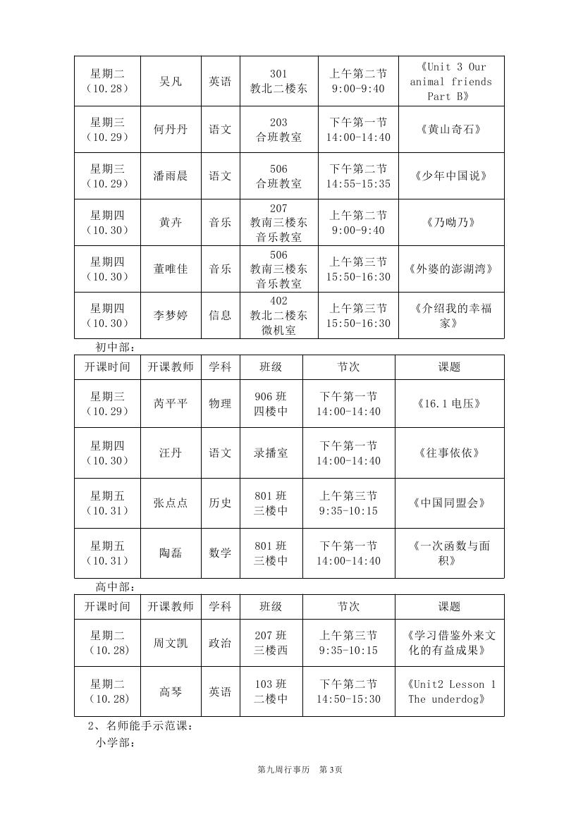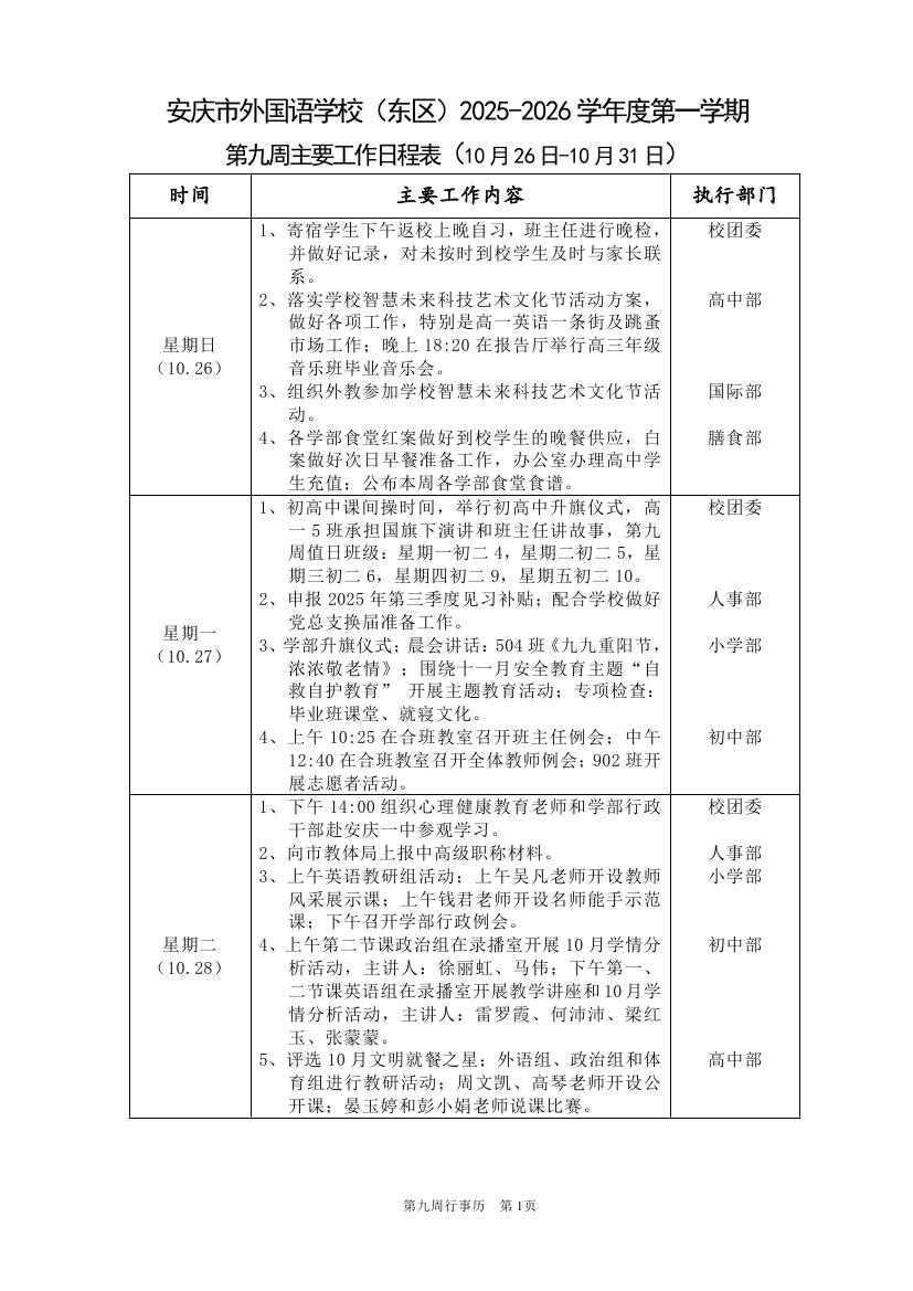 2025-2026學(xué)年度第一學(xué)期第九周行事歷(東區(qū))