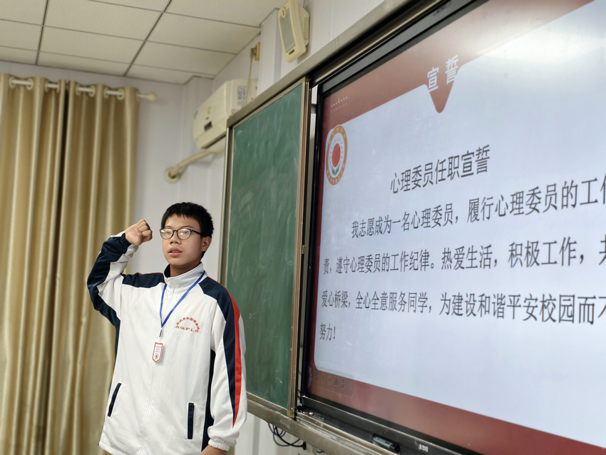 培訓(xùn)尾聲,全體心理委員起立宣誓,誓言鏗鏘有力,展現(xiàn)出投身心理健康互助工作的堅(jiān)定信念。此次培訓(xùn)是我校深化心理健康教育的重要舉措,學(xué)校始終將學(xué)生心理健康置于關(guān)鍵位置,構(gòu)建立體化教育體系,推出系列護(hù)航舉措。未來,學(xué)校將持續(xù)豐富教育形式,營(yíng)造全員關(guān)注心理健康的氛圍,守護(hù)學(xué)生心靈成長(zhǎng)。