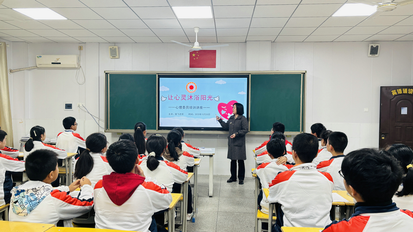 10月20日下午,我校在二樓教研室舉辦“讓心靈沐浴陽(yáng)光”心理委員專題培訓(xùn)講座,心理輔導(dǎo)室路飛老師主講,各年級(jí)心理委員參訓(xùn)。培訓(xùn)聚焦角色定位、工作技能與協(xié)同機(jī)制,旨在提升心理委員朋輩互助能力,筑牢校園心理健康“第一道防線”。